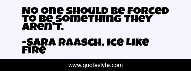 This page presents the quote "No one should be forced to be something they aren't.". Author of this quote is Sara Raasch, Ice Like Fire. This quote is about positive, inspiring, motivational, optimistic, confidence,.