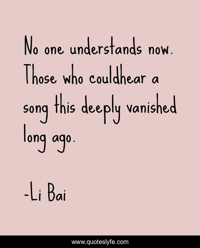 This page presents the quote "No one understands now. Those who couldhear a song this deeply vanished long ago.". Author of this quote is Li Bai. .
