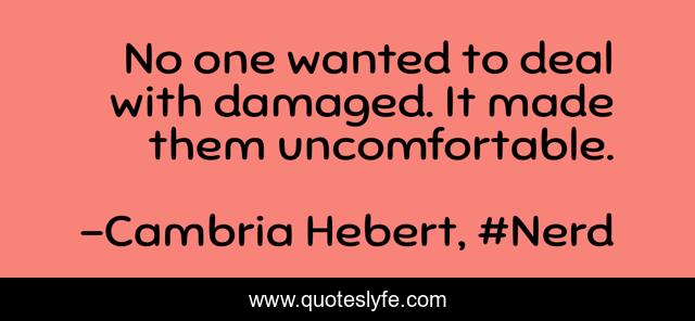 This page presents the quote "No one wanted to deal with damaged. It made them uncomfortable.". Author of this quote is Cambria Hebert, #Nerd. .