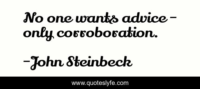 "John Steinbeck Quotes." Quoteslyfe.com, 2025. Sat. 06 Dec. 2025. <https://www.quoteslyfe.com/quote/No-one-wants-advice-only-corroboration-322466>.