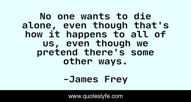 "James Frey Quotes." Quoteslyfe.com, 2025. Fri. 05 Dec. 2025. <https://www.quoteslyfe.com/quote/No-one-wants-to-die-alone-even-164892>.