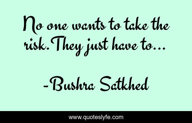 "Bushra Satkhed Quotes." Quoteslyfe.com, 2025. Fri. 05 Dec. 2025. <https://www.quoteslyfe.com/quote/No-one-wants-to-take-the-risk-146558>.
