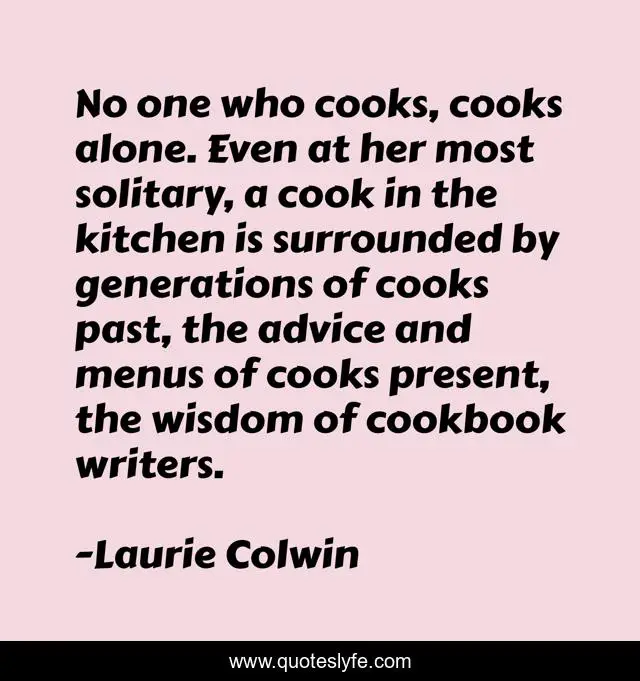 "Laurie Colwin Quotes." Quoteslyfe.com, 2025. Tue. 09 Dec. 2025. <https://www.quoteslyfe.com/quote/No-one-who-cooks-cooks-alone-Even-167849>.