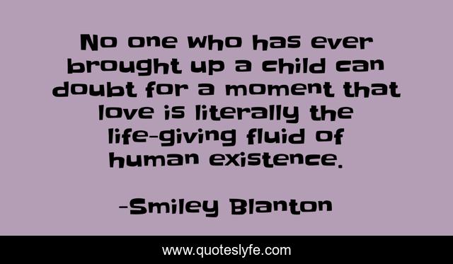 This page presents the quote "No one who has ever brought up a child can doubt for a moment that love is literally the life-giving fluid of human existence.". Author of this quote is Smiley Blanton. .