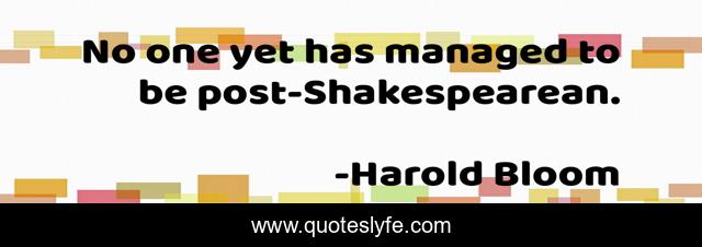 This page presents the quote "No one yet has managed to be post-Shakespearean.". Author of this quote is Harold Bloom. .