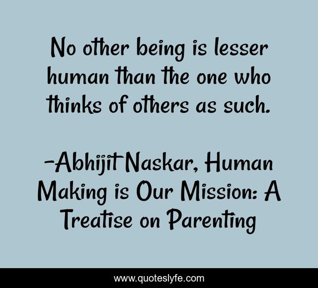 "Abhijit Naskar, Human Making is Our Mission: A Treatise on Parenting Quotes." Quoteslyfe.com, 2025. Mon. 08 Dec. 2025. <https://www.quoteslyfe.com/quote/No-other-being-is-lesser-human-than-71135>.