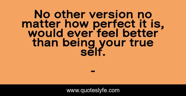 This page presents the quote "No other version no matter how perfect it is, would ever feel better than being your true self.". Author of this quote is . This quote is about edmond-mbiaka, being-yourself, your-true-self,.
