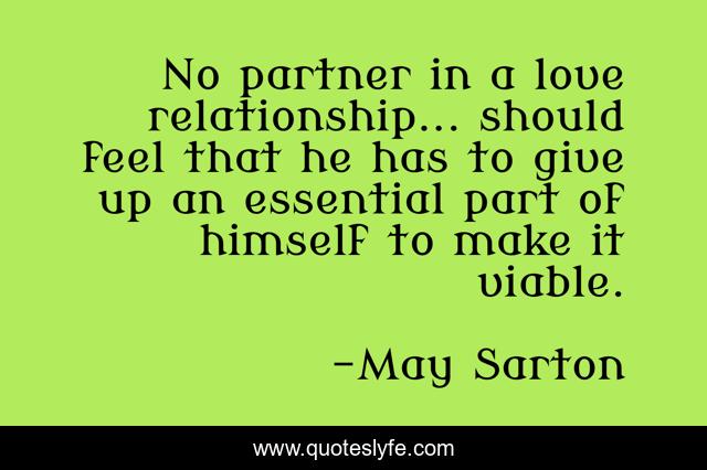 "May Sarton Quotes." Quoteslyfe.com, 2025. Tue. 09 Dec. 2025. <https://www.quoteslyfe.com/quote/No-partner-in-a-love-relationship-should-325217>.