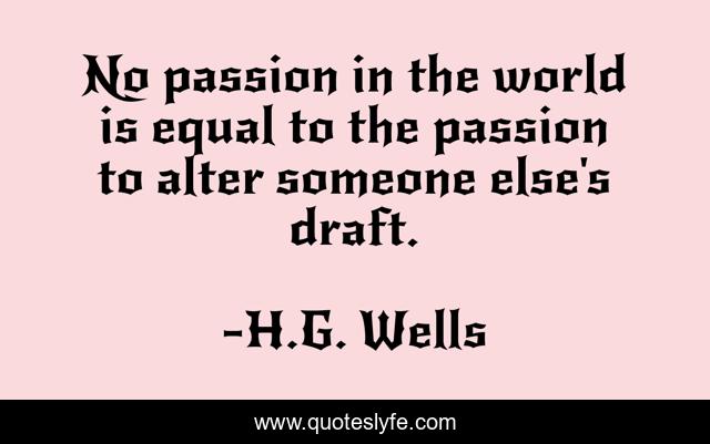 This page presents the quote "No passion in the world is equal to the passion to alter someone else's draft.". Author of this quote is H.G. Wells. .