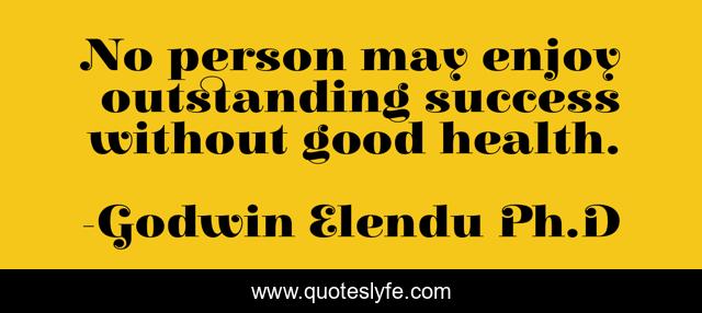 This page presents the quote "No person may enjoy outstanding success without good health.". Author of this quote is Godwin Elendu Ph.D. This quote is about accomplishment, success-self-improvement, life-and-living, educational-philosophy, wealth,.