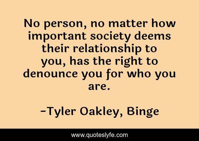 "Tyler Oakley, Binge Quotes." Quoteslyfe.com, 2025. Tue. 09 Dec. 2025. <https://www.quoteslyfe.com/quote/No-person-no-matter-how-important-society-102636>.