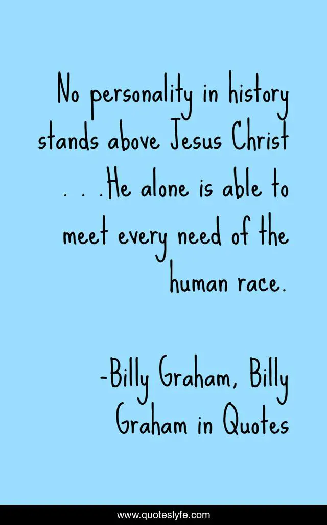 "Billy Graham, Billy Graham in Quotes Quotes." Quoteslyfe.com, 2025. Mon. 08 Dec. 2025. <https://www.quoteslyfe.com/quote/No-personality-in-history-stands-above-Jesus-152487>.