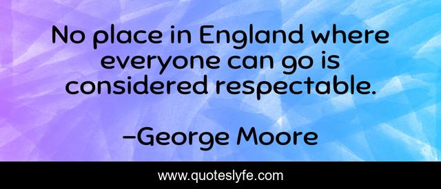 This page presents the quote "No place in England where everyone can go is considered respectable.". Author of this quote is George Moore. This quote is about snobs, snobbishness,.