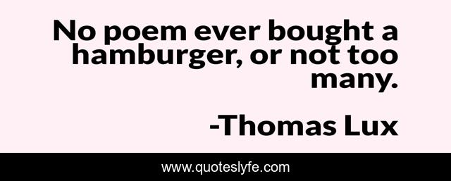 "Thomas Lux Quotes." Quoteslyfe.com, 2025. Mon. 08 Dec. 2025. <https://www.quoteslyfe.com/quote/No-poem-ever-bought-a-hamburger-or-27806>.