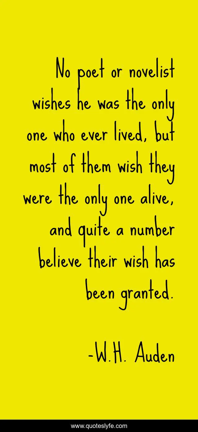 This page presents the quote "No poet or novelist wishes he was the only one who ever lived, but most of them wish they were the only one alive, and quite a number believe their wish has been granted.". Author of this quote is W.H. Auden. This quote is about ego, writers, novelists, egotism,.