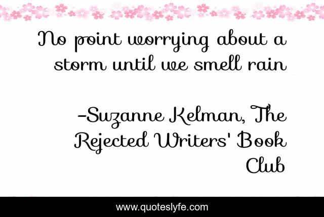 "Suzanne Kelman, The Rejected Writers' Book Club Quotes." Quoteslyfe.com, 2025. Fri. 05 Dec. 2025. <https://www.quoteslyfe.com/quote/No-point-worrying-about-a-storm-until-125126>.