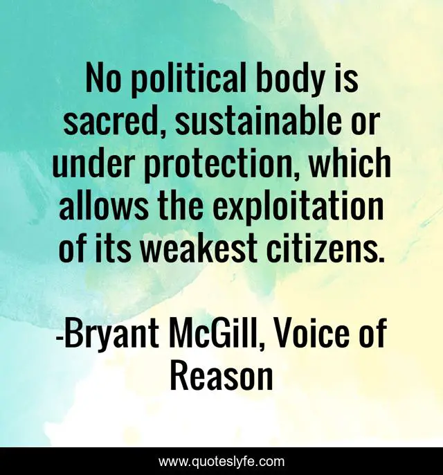 "Bryant McGill, Voice of Reason Quotes." Quoteslyfe.com, 2025. Sun. 07 Dec. 2025. <https://www.quoteslyfe.com/quote/No-political-body-is-sacred-sustainable-or-255371>.