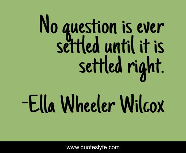 This page presents the quote "No question is ever settled until it is settled right.". Author of this quote is Ella Wheeler Wilcox. .