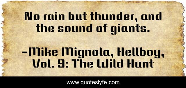 This page presents the quote "No rain but thunder, and the sound of giants.". Author of this quote is Mike Mignola, Hellboy, Vol. 9: The Wild Hunt. This quote is about thunder, rain,.