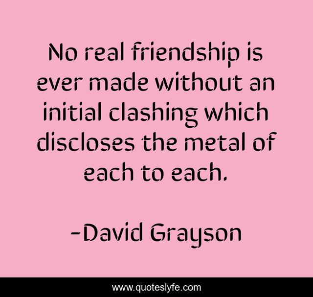 This page presents the quote "No real friendship is ever made without an initial clashing which discloses the metal of each to each.". Author of this quote is David Grayson. .