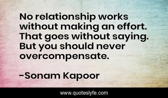 This page presents the quote "No relationship works without making an effort. That goes without saying. But you should never overcompensate.". Author of this quote is Sonam Kapoor. This quote is about saying, effort,.