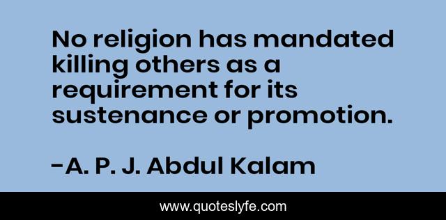 "A. P. J. Abdul Kalam Quotes." Quoteslyfe.com, 2025. Tue. 09 Dec. 2025. <https://www.quoteslyfe.com/quote/No-religion-has-mandated-killing-others-as-301214>.