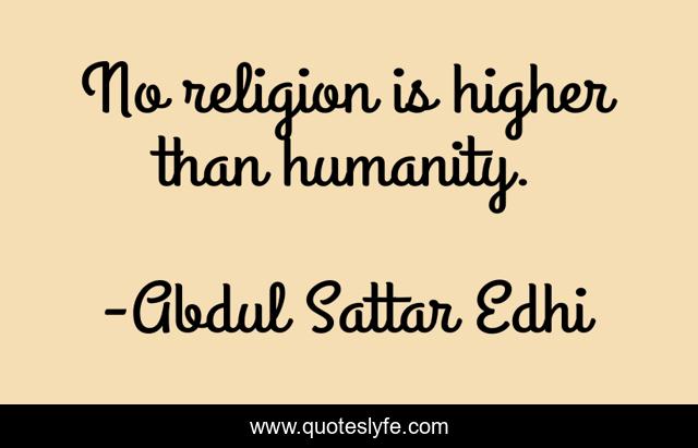 "Abdul Sattar Edhi Quotes." Quoteslyfe.com, 2025. Tue. 09 Dec. 2025. <https://www.quoteslyfe.com/quote/No-religion-is-higher-than-humanity-29916>.