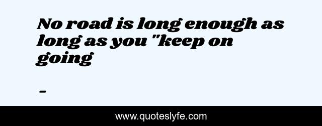 This page presents the quote "No road is long enough as long as you "keep on going". Author of this quote is . This quote is about positive, life, motivational, optimistic, confidence,.