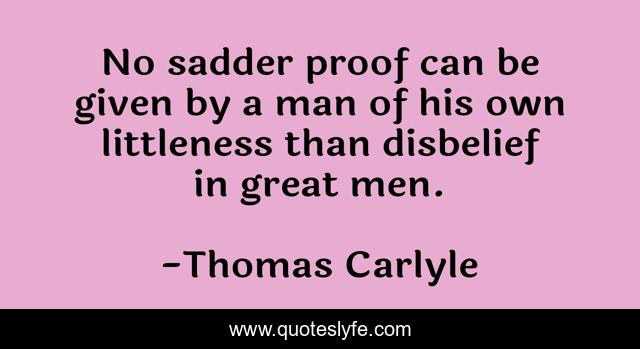 This page presents the quote "No sadder proof can be given by a man of his own littleness than disbelief in great men.". Author of this quote is Thomas Carlyle. .