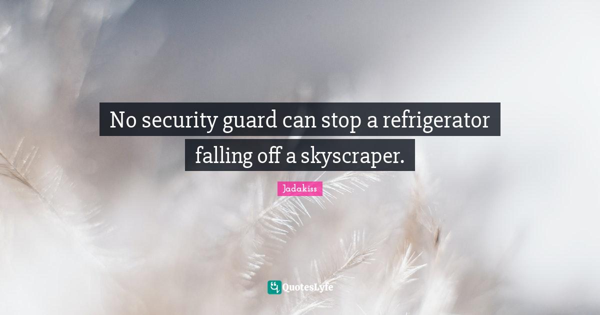 This page presents the quote "No security guard can stop a refrigerator falling off a skyscraper.". Author of this quote is Jadakiss. This quote is about falling off, security, security guards, rapper, fall, skyscraper,.
