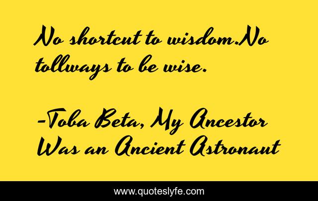 "Toba Beta, My Ancestor Was an Ancient Astronaut Quotes." Quoteslyfe.com, 2025. Sat. 06 Dec. 2025. <https://www.quoteslyfe.com/quote/No-shortcut-to-wisdom-No-tollways-to-13006>.
