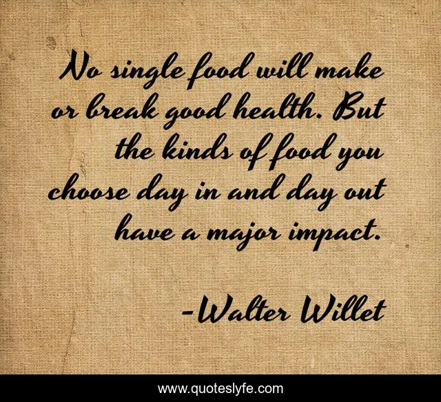 "Walter Willet Quotes." Quoteslyfe.com, 2025. Mon. 08 Dec. 2025. <https://www.quoteslyfe.com/quote/No-single-food-will-make-or-break-168365>.