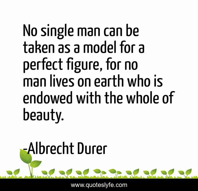 This page presents the quote "No single man can be taken as a model for a perfect figure, for no man lives on earth who is endowed with the whole of beauty.". Author of this quote is Albrecht Durer. This quote is about perfect, earth, man,.