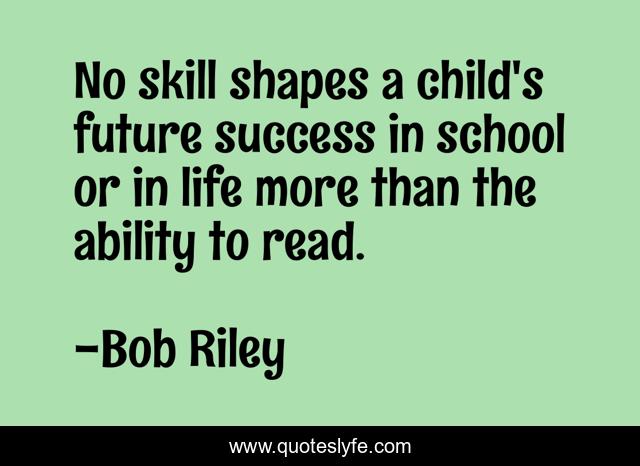 This page presents the quote "No skill shapes a child's future success in school or in life more than the ability to read.". Author of this quote is Bob Riley. This quote is about life, future, school,.