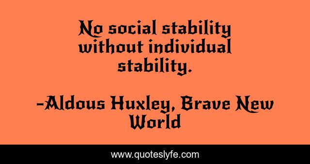 "Aldous Huxley, Brave New World Quotes." Quoteslyfe.com, 2025. Fri. 05 Dec. 2025. <https://www.quoteslyfe.com/quote/No-social-stability-without-individual-stability-102242>.