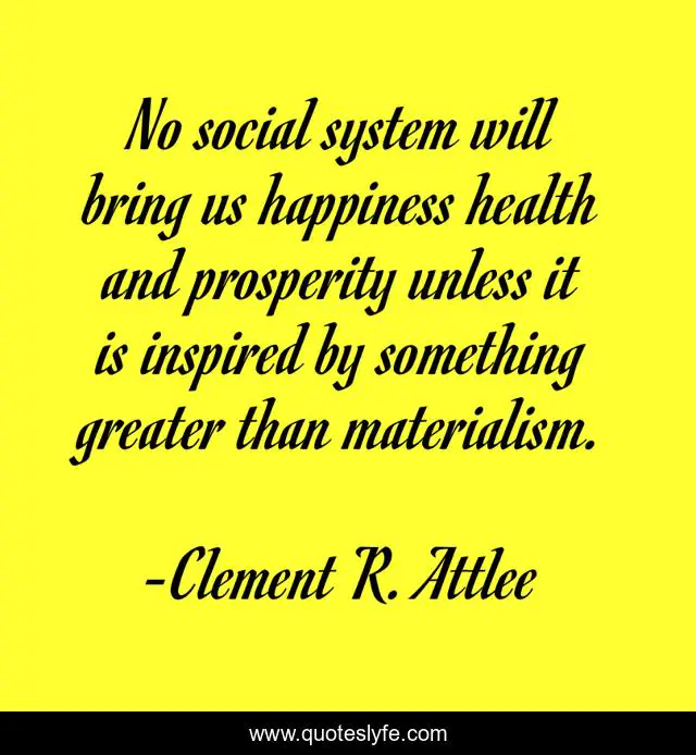 This page presents the quote "No social system will bring us happiness health and prosperity unless it is inspired by something greater than materialism.". Author of this quote is Clement R. Attlee. .