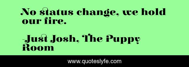 "Just Josh, The Puppy Room Quotes." Quoteslyfe.com, 2025. Mon. 08 Dec. 2025. <https://www.quoteslyfe.com/quote/No-status-change-we-hold-our-fire-157323>.