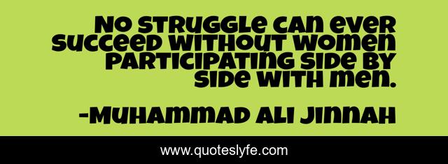This page presents the quote "No struggle can ever succeed without women participating side by side with men.". Author of this quote is Muhammad Ali Jinnah. This quote is about men, struggle, women,.