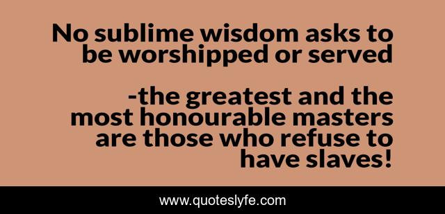 This page presents the quote "No sublime wisdom asks to be worshipped or served". Author of this quote is the greatest and the most honourable masters are those who refuse to have slaves!. .