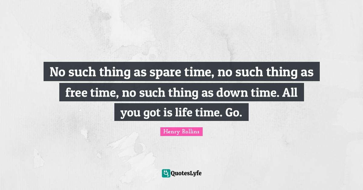 This page presents the quote "No such thing as spare time, no such thing as free time, no such thing as down time. All you got is life time. Go.". Author of this quote is Henry Rollins. This quote is about spares, down time, free time, life time, spare time,.