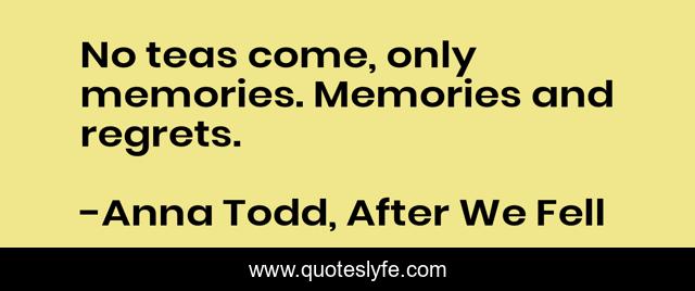 "Anna Todd, After We Fell Quotes." Quoteslyfe.com, 2025. Sat. 06 Dec. 2025. <https://www.quoteslyfe.com/quote/No-teas-come-only-memories-Memories-and-124514>.