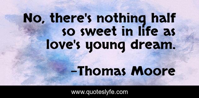 This page presents the quote "No, there's nothing half so sweet in life as love's young dream.". Author of this quote is Thomas Moore. This quote is about sweet, life, dream,.