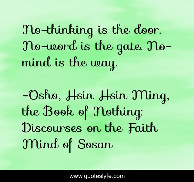 "Osho, Hsin Hsin Ming, the Book of Nothing: Discourses on the Faith Mind of Sosan Quotes." Quoteslyfe.com, 2025. Tue. 09 Dec. 2025. <https://www.quoteslyfe.com/quote/No-thinking-is-the-door-No-word-87026>.
