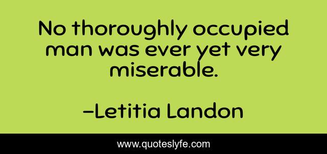This page presents the quote "No thoroughly occupied man was ever yet very miserable.". Author of this quote is Letitia Landon. .
