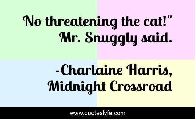 "Charlaine Harris, Midnight Crossroad Quotes." Quoteslyfe.com, 2025. Sat. 06 Dec. 2025. <https://www.quoteslyfe.com/quote/No-threatening-the-cat-Mr-Snuggly-said-222637>.