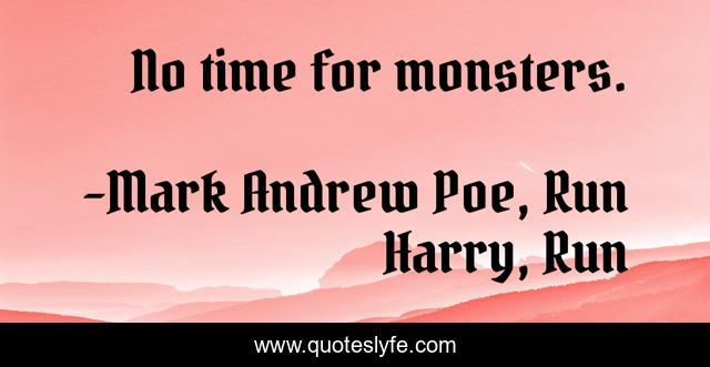 "Mark Andrew Poe, Run Harry, Run Quotes." Quoteslyfe.com, 2025. Mon. 08 Dec. 2025. <https://www.quoteslyfe.com/quote/No-time-for-monsters-194376>.