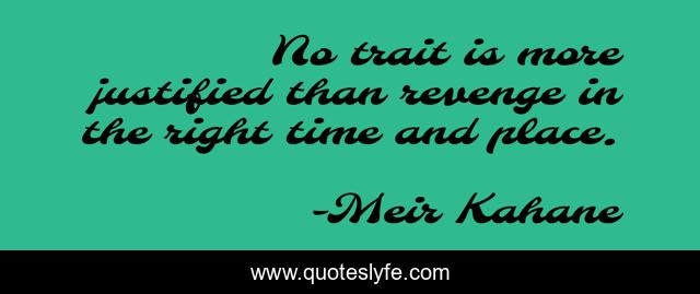This page presents the quote "No trait is more justified than revenge in the right time and place.". Author of this quote is Meir Kahane. This quote is about place, revenge, right time,.