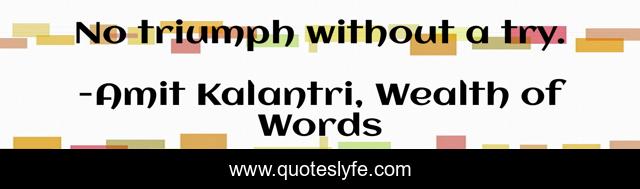 "Amit Kalantri, Wealth of Words Quotes." Quoteslyfe.com, 2025. Sat. 06 Dec. 2025. <https://www.quoteslyfe.com/quote/No-triumph-without-a-try-36967>.