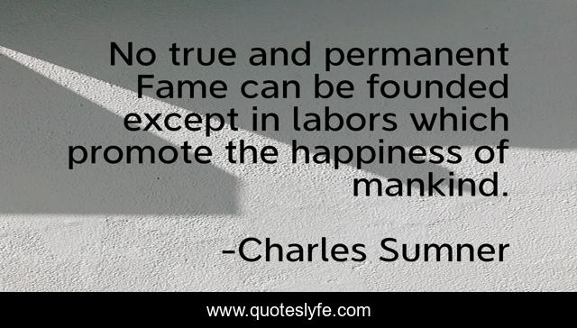 This page presents the quote "No true and permanent Fame can be founded except in labors which promote the happiness of mankind.". Author of this quote is Charles Sumner. .