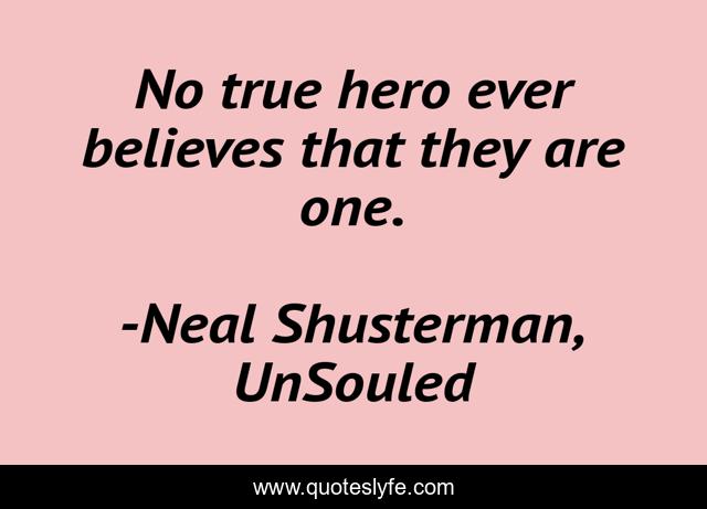 "Neal Shusterman, UnSouled Quotes." Quoteslyfe.com, 2025. Sat. 06 Dec. 2025. <https://www.quoteslyfe.com/quote/No-true-hero-ever-believes-that-they-238903>.